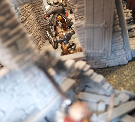Cette table de jeu met en scène un raid menés par les hommes rats (non, ça n'existe pas!) dans les ruines du village de Grimdale.